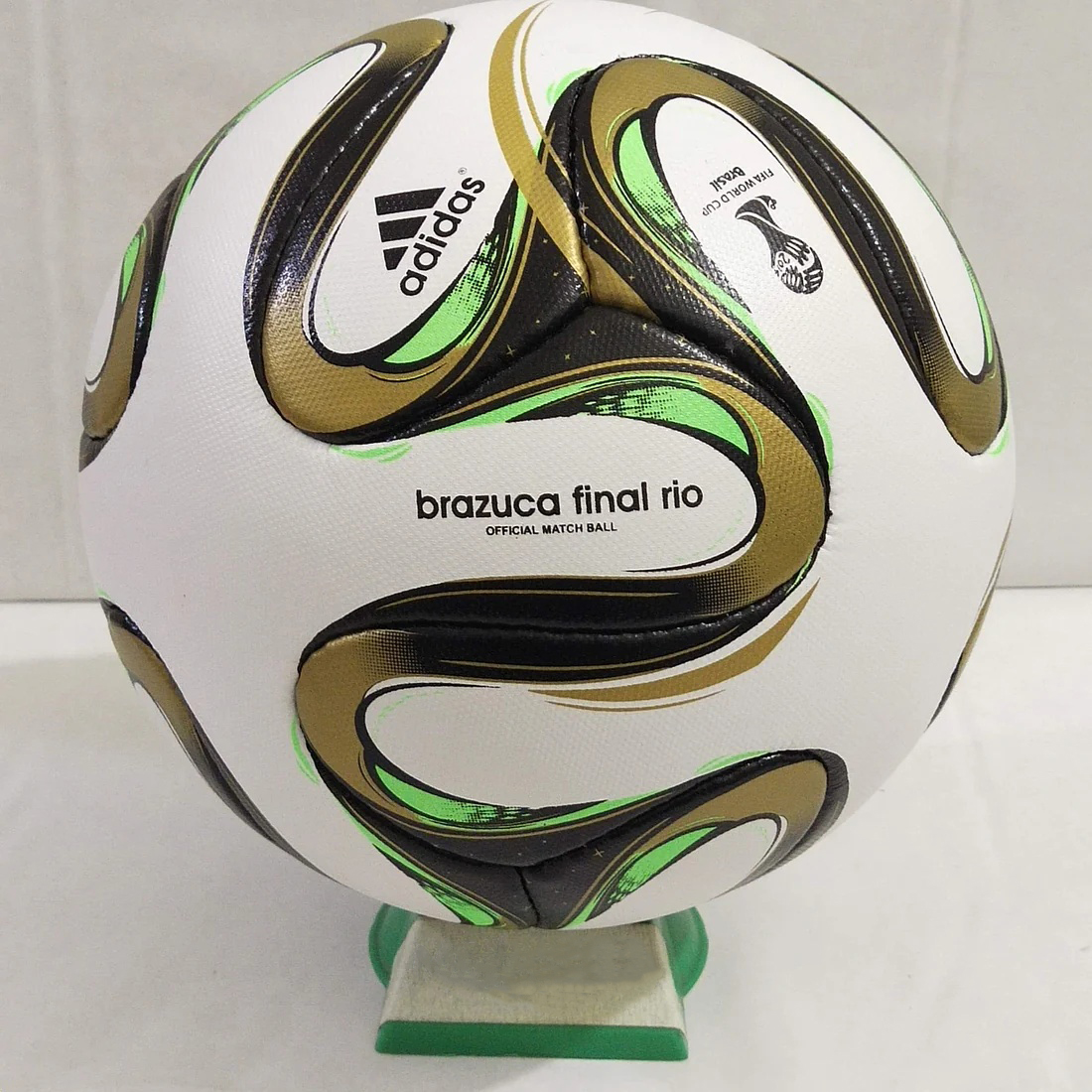 The ball has been announced on May 29, 2014, featured a variation of the Adidas Brazuca named the Adidas Brazuca Final Rio. The technical aspects of the World Cup 2014 final match ball are the same, just the color is different from the standard Brazuca ball used in the group stages and other playoffs. The Brazuca Final ball has a green, gold and black colouring.