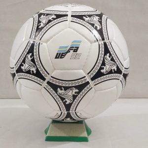 Adidas Etrusco Unico is the Official Match Ball of UEFA Europa League 1992. It had a design inspired by the ancient Etruscan art and culture of Italy, featuring 20 Tango triads with three lion heads each. It was the first ball with an internal layer of black polyurethane foam, which improved its water resistance and durability.