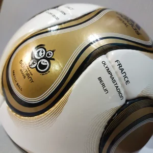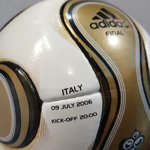 This special Match Ball style is comparable to the adidas Teamgeist but executed in gold, the color of the FIFA World Cup trophy, with black and white details. These balls were created in a limited edition.