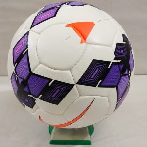 The Nike Incyte Premier League ball was the official match ball for the 2013/14 season. It featured a bold design with purple graphics and a vibrant orange Nike swoosh, incorporating Nike’s RaDaR (Rapid Decision and Response) technology to enhance visibility on the pitch. The ball was praised for its innovation and performance, including a micro-textured casing for accurate flight and a five-layer construction for optimal touch.