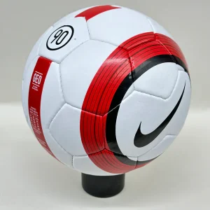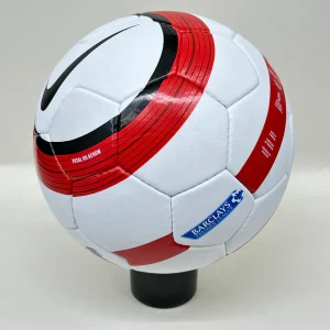 The Nike Total 90 Aerow 1 ball was used in the English Premier League from 2004 to 2006. It is the successor of the Nike Geo Merlin Vapor, which is the first ball to feature the Nike Geo technology. The Nike Total 90 Aerow 1 had a 26-panel design with a textured casing that improved the ball’s aerodynamics, accuracy, and touch. The ball is made of synthetic leather with a shiny waterproof coating. The ball is named after the Total 90, a line of soccer products by Nike that aimed to enhance the performance of strikers.