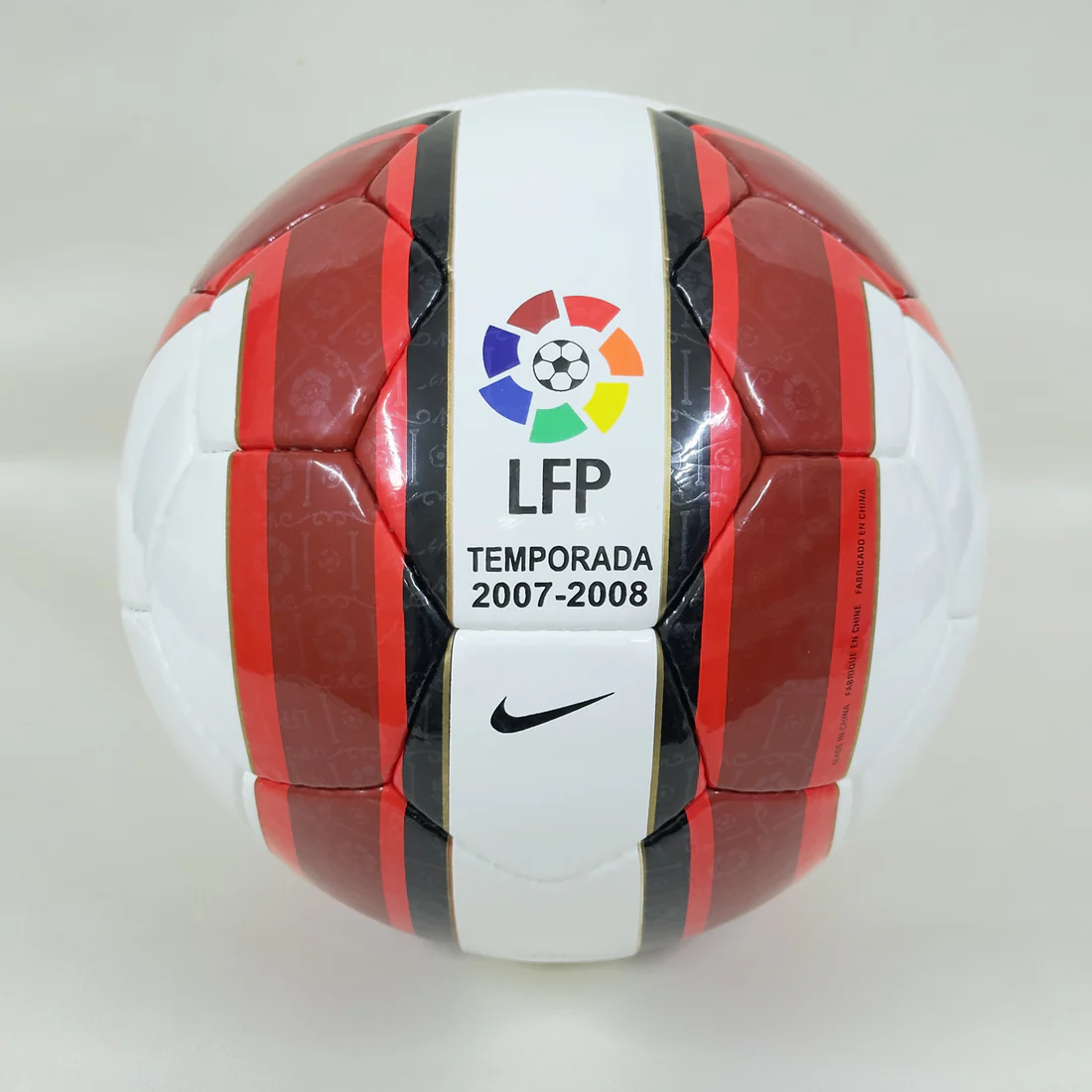 The Nike Total 90 Aerow 2 ball is used in the La Liga from 2006 to 2008. It was the successor of the Nike Total 90 Aerow, which was the first ball to feature the Nike Geo technology. The Nike Total 90 Aerow 2 had a 26-panel design with a textured casing that improved the ball’s aerodynamics, accuracy, and touch. The ball was made of synthetic leather with a shiny waterproof coating. The ball was named after the Total 90, a line of soccer products by Nike that aimed to enhance the performance of strikers.